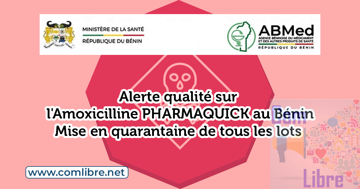 Face à ce constat de défaut de qualité, l’ABMed a pris une mesure de précaution immédiate et généralisée : une mise en quarantaine de tous les lots de la spécialité AMOXICILLINE PHARMAQUICK 500 MG CP.