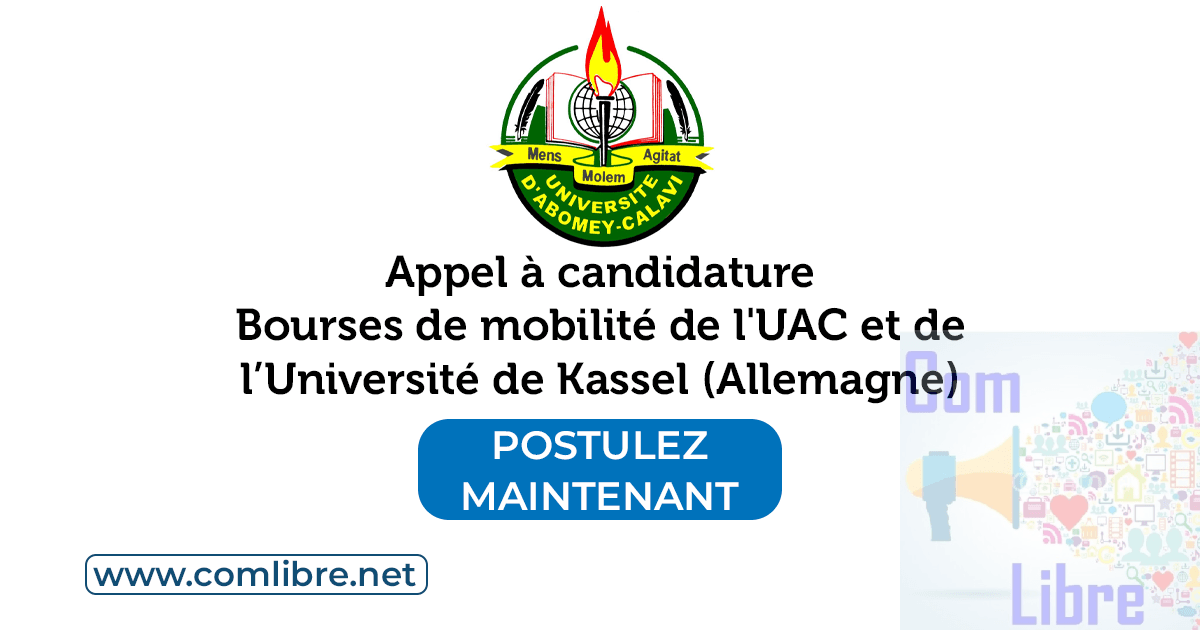 Dans le cadre de l’accord de mobilité avec l’Université de Kassel (Allemagne), l’Université d’Abomey-Calavi (UAC) du Bénin met à la disposition des étudiants de la Faculté des Sciences Agronomiques (FSA) cinq (05) bourses de mobilité de niveau master d’une durée d’un semestre, pour le premier semestre de l’année universitaire 2025-2026 (septembre 2025 – février 2026).