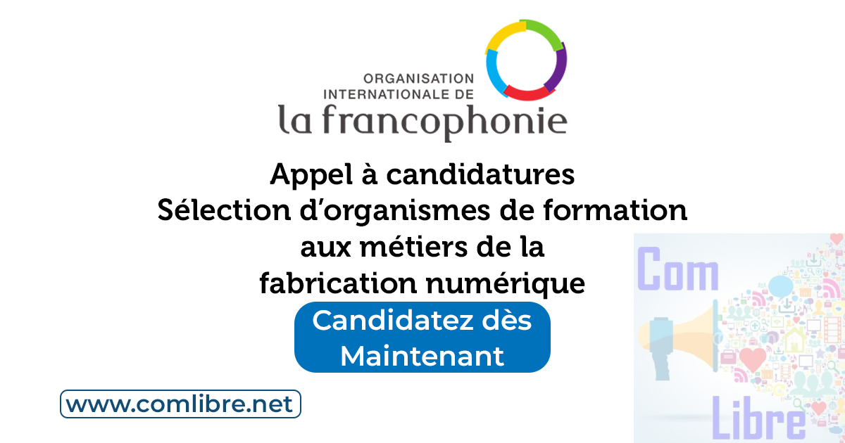 Le présent appel à candidatures est ouvert aux Fablabs, Tiers Lieux et espaces de fabrication numérique spécialisés dans la fabrication numérique et dans l’accompagnement des populations à la transformation numérique des sociétés. Il concerne prioritairement les pays suivants : Bénin, Burundi, Cameroun, Comores, Congo, Congo RD, Côte d’Ivoire, Djibouti, Gabon, Guinée, Madagascar, Rwanda, Seychelles, Mauritanie, Sénégal, Tchad et Togo.