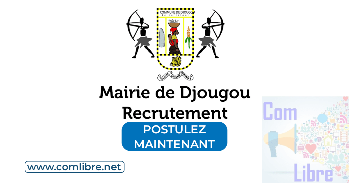 Dans le cadre du renforcement des capacités de la Commune de Djougou, un avis de recrutement est lancé pour deux (02) agents contractuels. Ce processus est organisé par la Mairie de Djougou, avec l’assistance technique de la Direction Départementale du Travail et de la Fonction Publique de la Donga (DDTFP/Donga). Le test de recrutement est prévu pour le 21 juillet 2025. Les postes sont disponibles immédiatement et le lieu de travail sera la Mairie de Djougou.