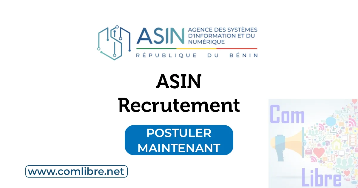 L’Agence des Systèmes d’Information et du Numérique (ASIN) est une agence gouvernementale sous la double tutelle du Ministère de l’Économie et des Finances et du Ministère du Numérique et de la Digitalisation, chargée d’assurer la mise en œuvre opérationnelle des programmes et projets entrant dans le cadre des stratégies de développement des services et systèmes d’information sécurisés au Bénin.
