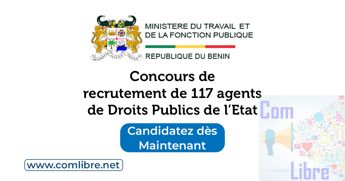Dans le cadre du renforcement des capacités en personnel du Ministère du Travail et de la Fonction Publique, du Ministère des Affaires Sociales et de la Microfinance et de celui de l’Enseignement Supérieur et de la Recherche Scientifique, il sera organisé, le samedi 15 novembre 2025, un concours direct ou externe de recrutement de cent dix-sept (117) Agents Contractuels de Droit Public de l’État dont six (06) personnes handicapées.