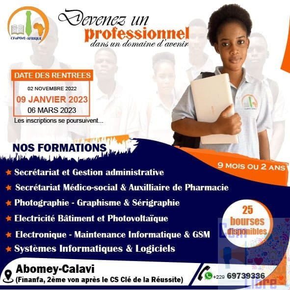 Leadership Jeunes ONG, offre pour le compte de la rentrée 2022-2023, 25 bourses de formation professionnelle qui vous permet d’avoir 25% réduction sur les frais de formation dans son centre CFoPOrE-AFRIQUE .