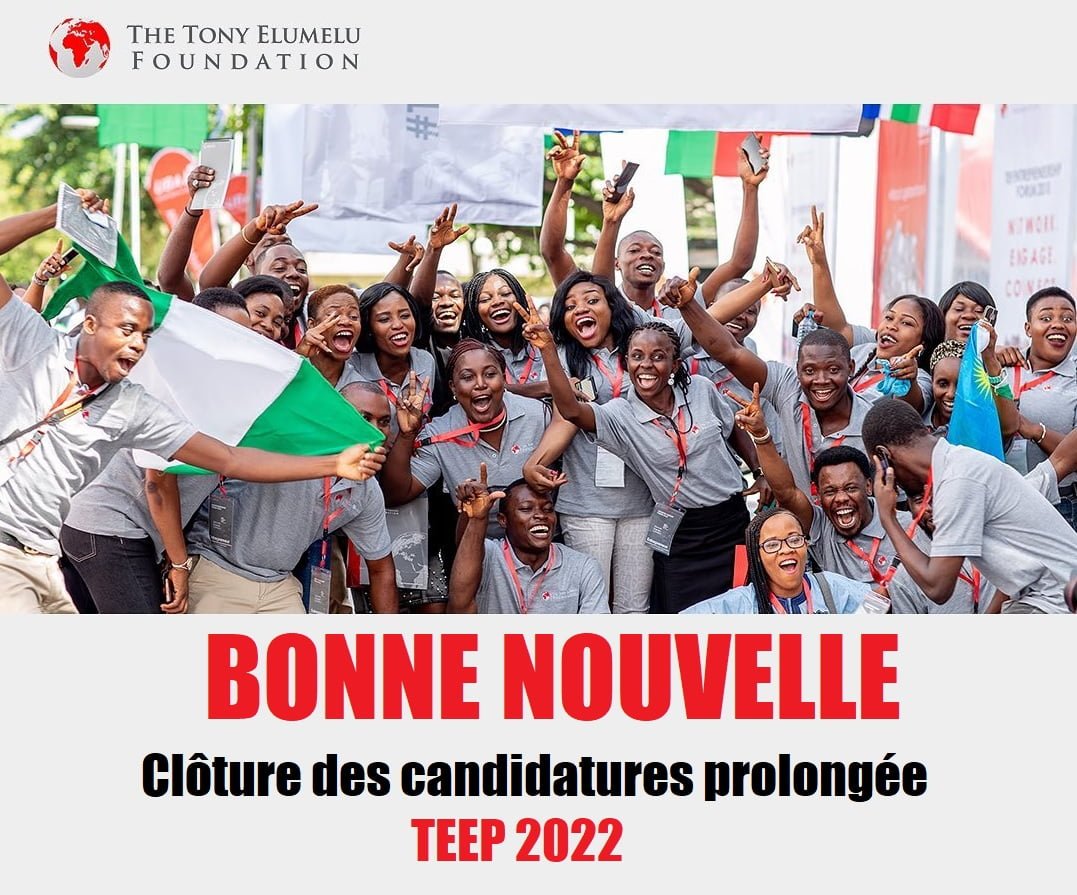 Prévu pour être clôturées le 31 Mars 2022 le délai des candidatures pour le Programme d’entrepreneuriat de la fondation Tony Elumelu a été prolongé de 7 jours.