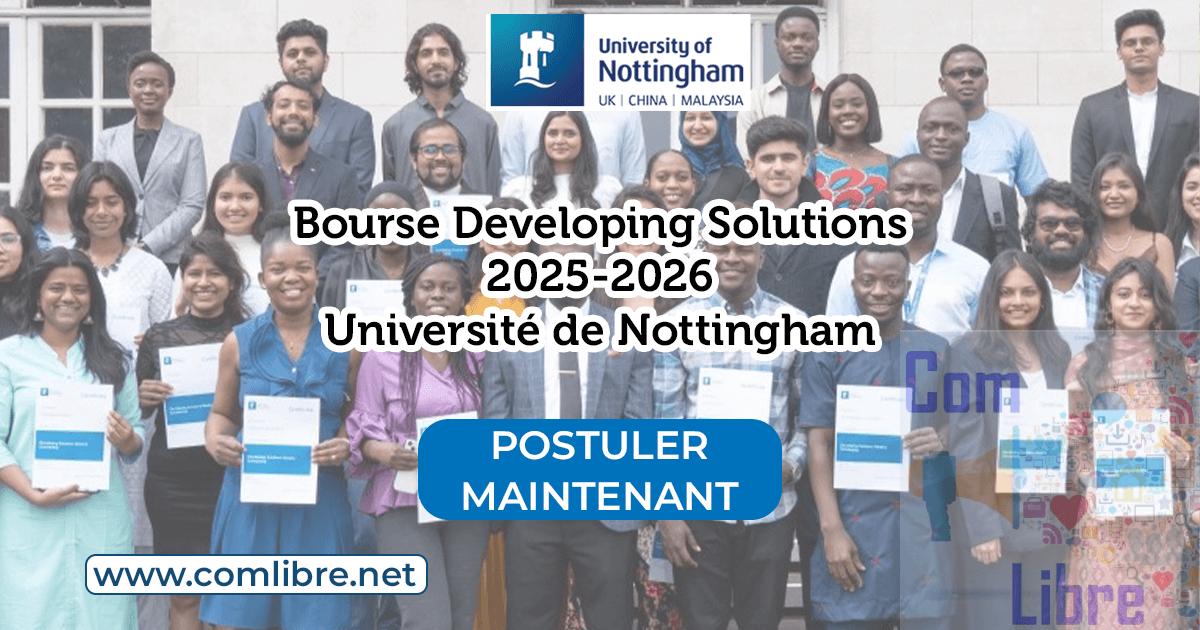 Pour plus d’informations et pour soumettre votre candidature, visitez le site officiel de l’Université de Nottingham : Developing Solutions Scholarship.