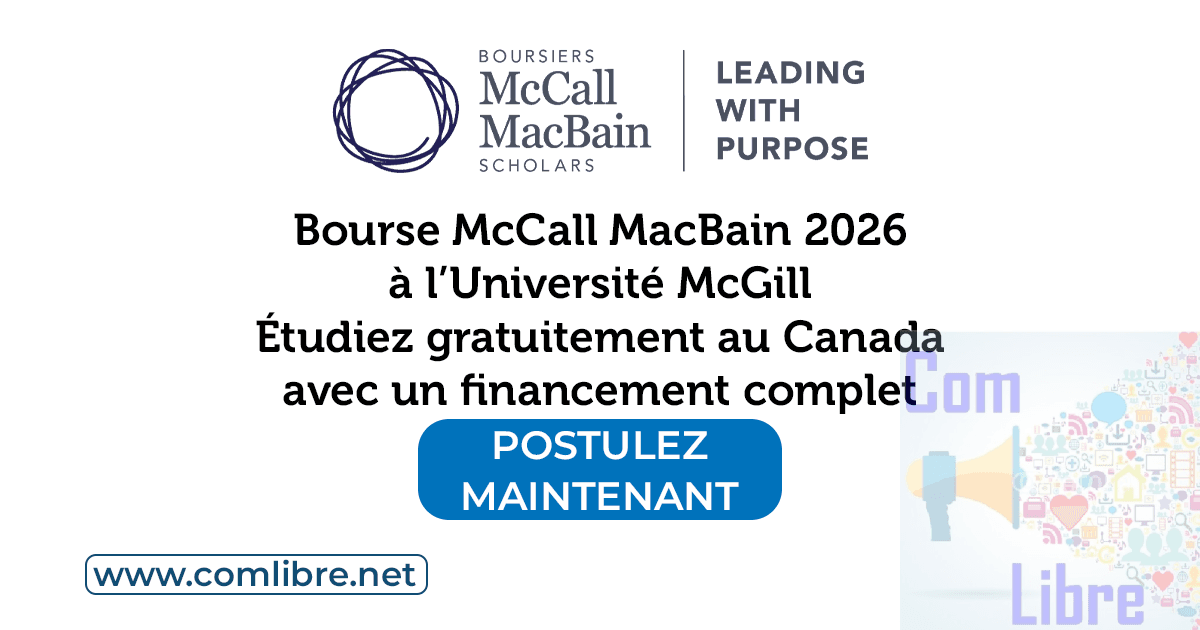 L’Université McGill de Montréal lance son appel à candidatures pour la bourse d’études McCall MacBain 2026, un programme de financement intégral destiné aux étudiants internationaux, canadiens et américains désireux de poursuivre un Master ou un diplôme professionnel de deuxième cycle. En plus des frais de scolarité couverts, la bourse offre une allocation mensuelle et des billets d’avion pour les candidats internationaux.