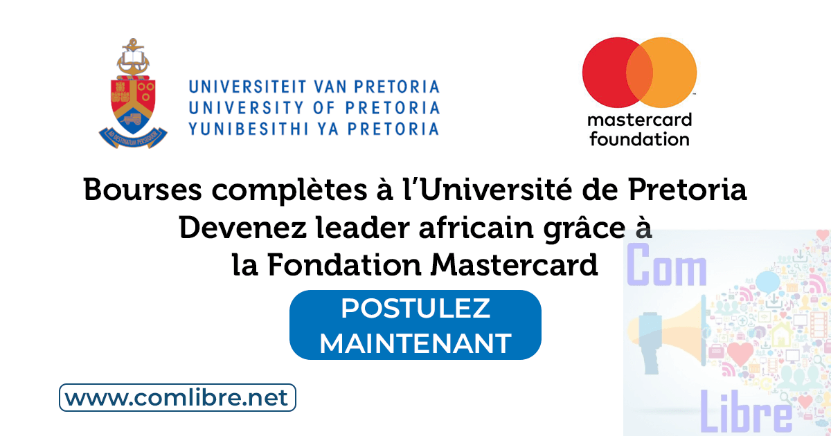 L’Université de Pretoria (UP), en partenariat avec la Fondation Mastercard, offre des bourses complètes aux jeunes Africains talentueux confrontés à des défis socio-économiques majeurs. Ce programme vise à former la prochaine génération de leaders africains engagés dans la transformation sociale et économique du continent.
