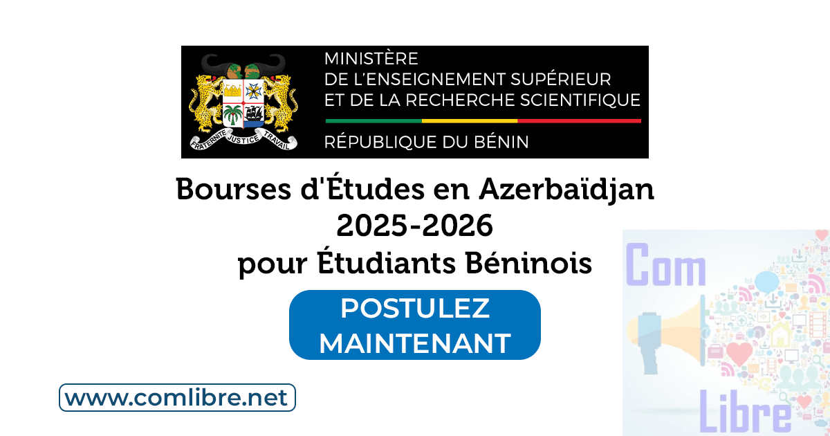 Le Ministère de l’Enseignement supérieur et de la Recherche scientifique (MESRS) communique une opportunité de bourses d’études offerte par la République d’Azerbaïdjan. Pour l’année académique 2025-2026, trois (03) bourses d’études supérieures sont mises à disposition des étudiants béninois.