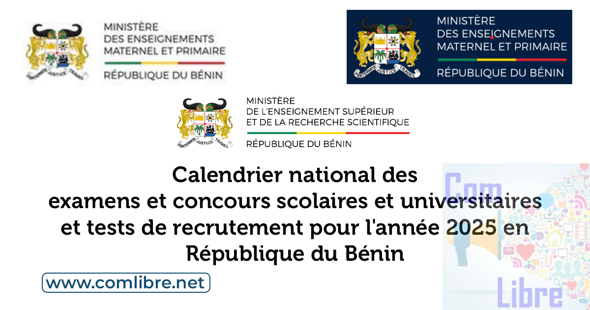 Le calendrier national des examens et concours scolaires et universitaires et tests de recrutement en République du Bénin pour le compte de l’année 2025 à été rendu publics.