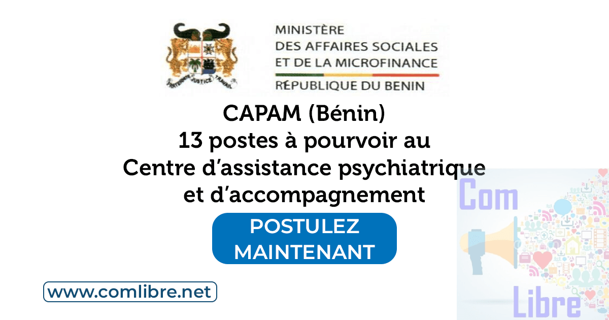 Les postes sont basés au Centre d’Assistance Psychiatrique et d’Accompagnement des personnes en situation de Mendicité, situé dans la Commune de KPOMASSE. L’emploi est proposé sous la forme d’un contrat à durée déterminée d’une durée de deux (02) ans, renouvelable.