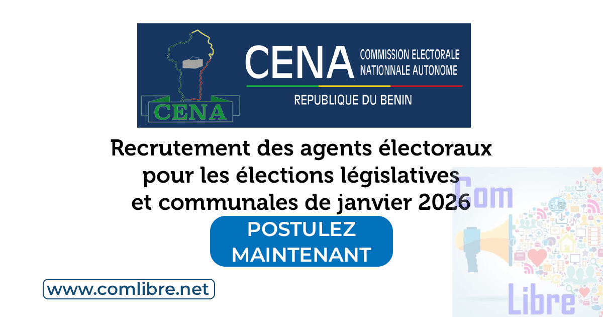 Dans le cadre de l’organisation des élections en République du Bénin par la Commission Electorale Nationale Autonome (CENA) à lancer le recrutement des agents électoraux.
