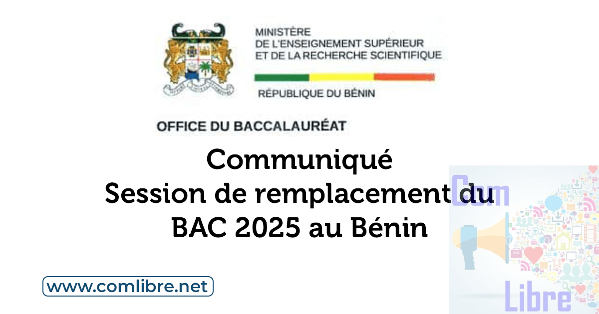 Porte à l’attention des candidats de la session de remplacement du Baccalauréat session unique de juin 2025, que les épreuves écrites démarrent le lundi 14 juillet 2025, au centre unique du CEG Sainte Rita à Cotonou.
