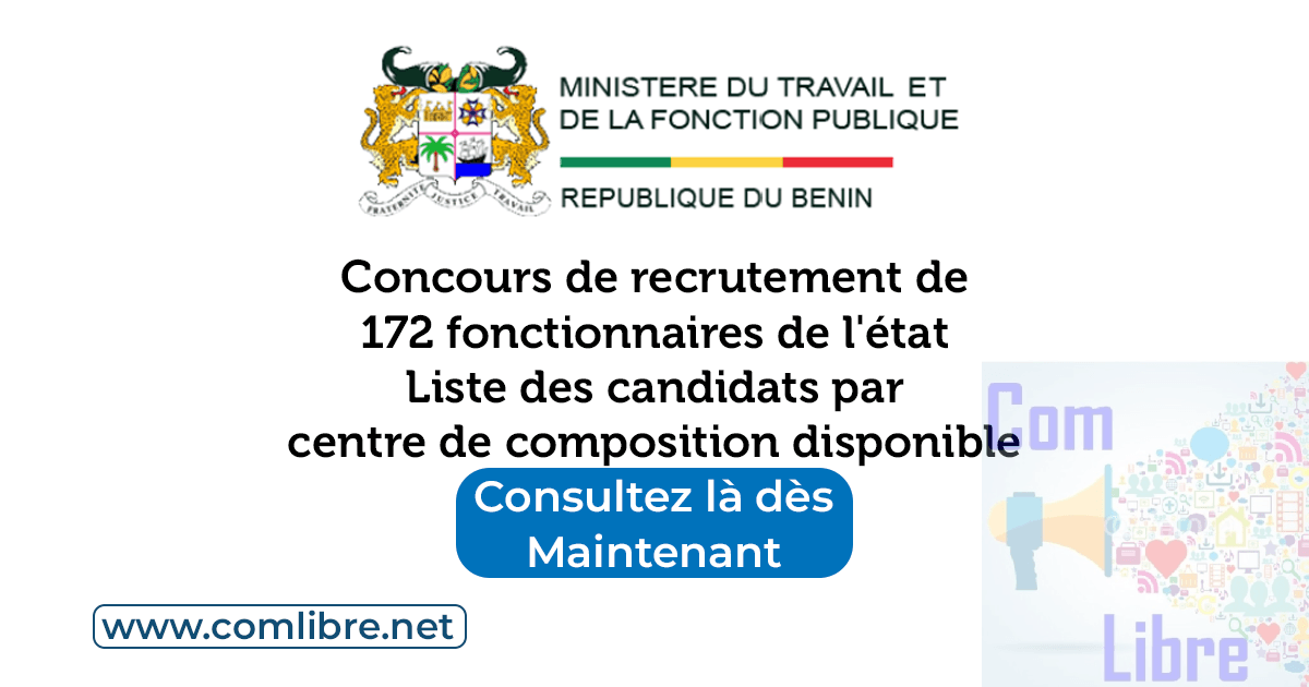 Le Ministère du Travail et de la Fonction Publique (MTFP) à rendu public ce mardi 11 novembre 2025, la liste des candidats par centre de composition pour le concours de recrutement de 172 fonctionnaires de l’État au profit du MEF.