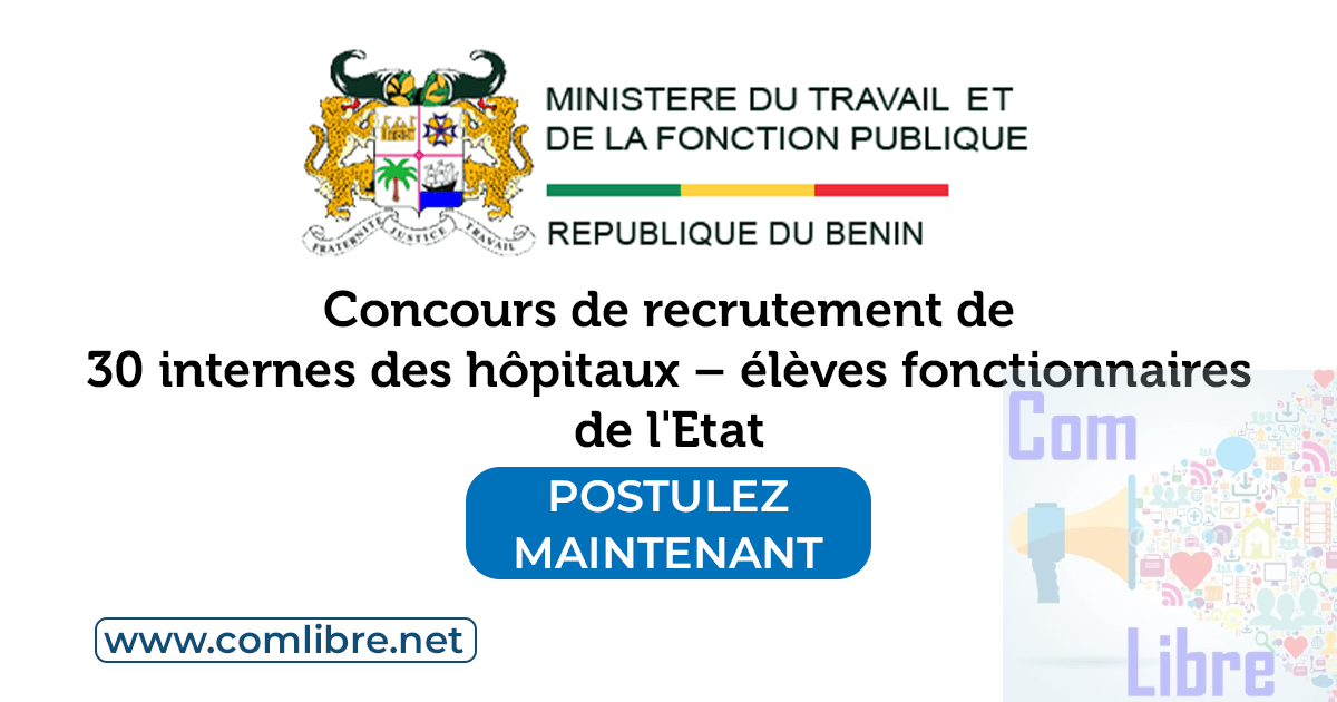 Dans le cadre du renforcement des effectifs des praticiens spécialistes dans les hôpitaux en vue d’assurer une meilleure prise en charge sanitaire des populations, il sera organisé du mardi 06 mai au vendredi 16 mai 2025, un concours de recrutement de trente (30) internes des hôpitaux, élèves fonctionnaires de l’Etat.