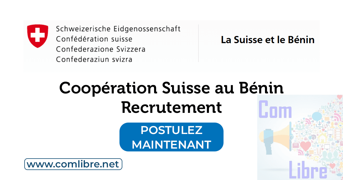 Les candidat·e·s doivent déposer leur dossier, sous pli fermé, à la Réception du Bureau de la Coopération Suisse au Bénin, sis au lot 117, Zongo Ehuzu, Rue du PNUD, attenant à PEACE CORPS, avec la mention « Candidature au poste de Chauffeur Commissionnaire ».