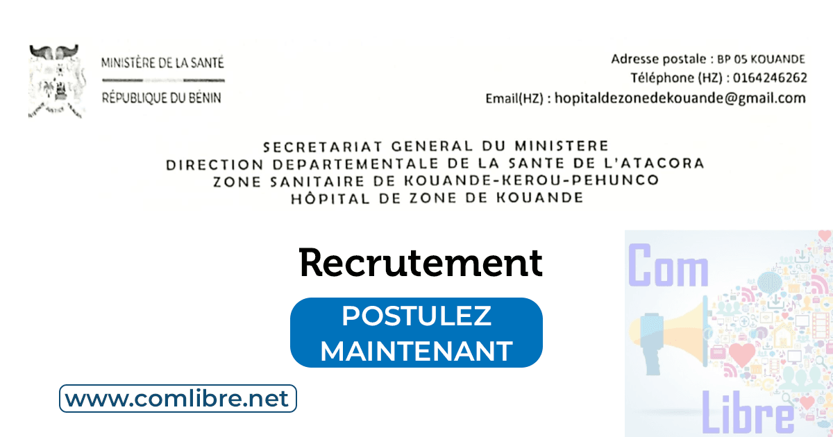 Dans le cadre du renforcement de l’effectif du personnel de l’hôpital de zone de Kouandé, le Directeur de l’hôpital lance un avis d’appel à candidature pour le recrutement du personnel qualifié.