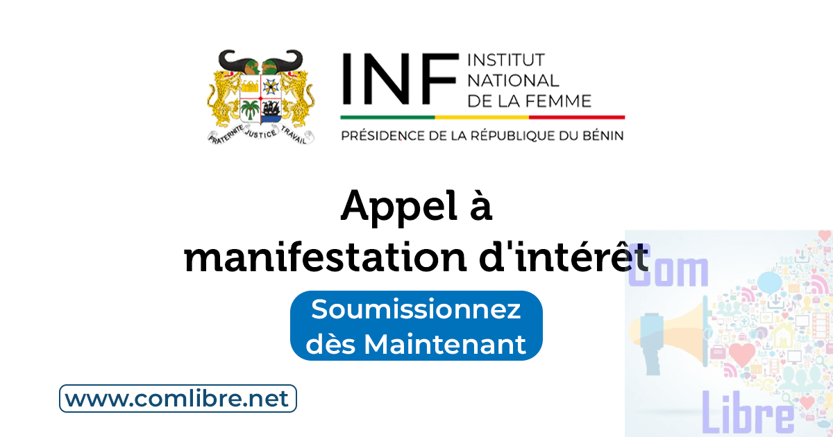 Dans le cadre de l’exécution du Budget 2025, l’Institut National de la Femme (INF) lance le présent appel à manifestation pour la constitution de son répertoire de Fournisseurs, de Prestataires, de Consultants et d’Entrepreneurs régulièrement installés ou des personnes physiques de compétences avérées pour la mise en œuvre des différents programmes et projets au titre de l’année 2025 et pour ses marchés en dessous du seuil de dispense.