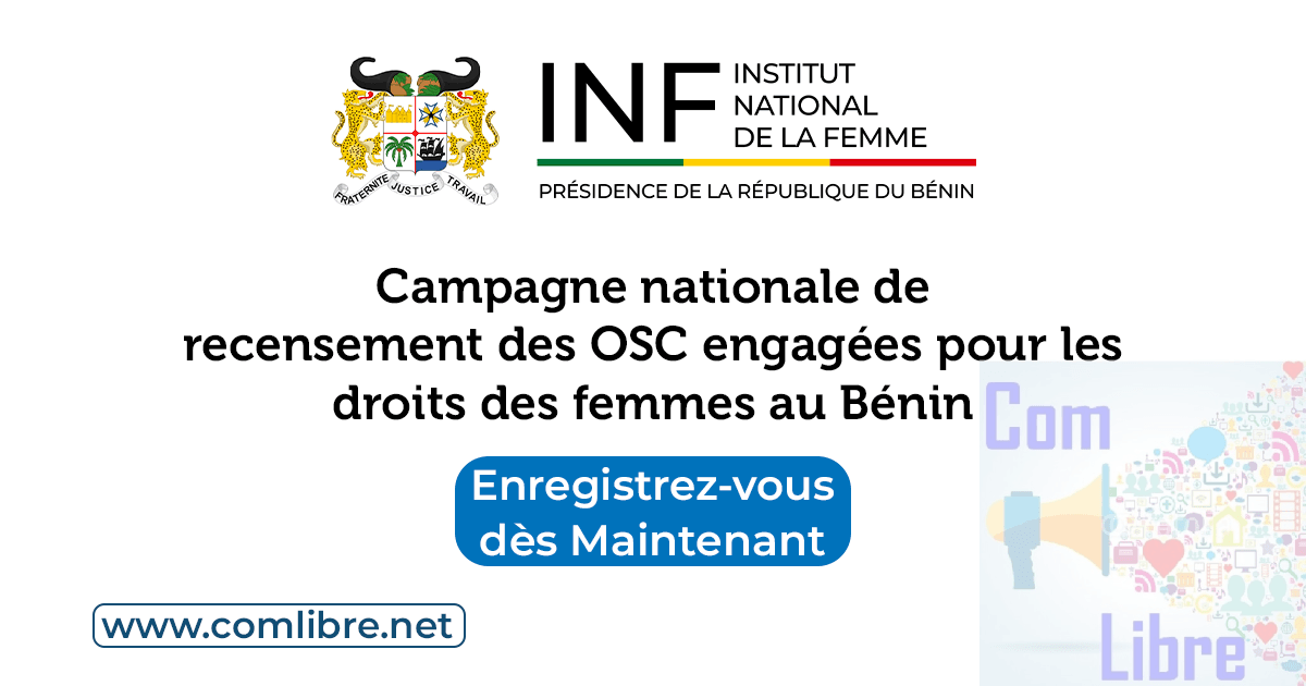 L’Institut National de la Femme (INF) a lancé une campagne nationale de recensement destinée aux Organisations de la Société Civile (OSC) œuvrant pour la promotion et la protection des droits des femmes et des filles en République du Bénin.