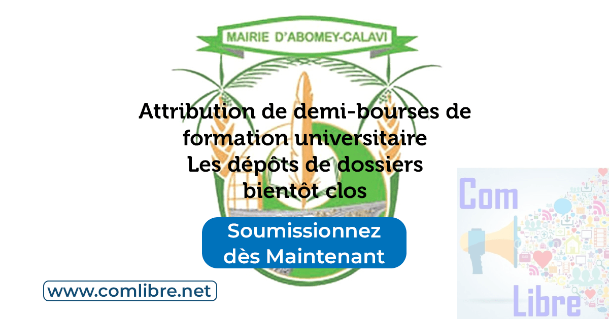 La Mairie de la Municipalité d’Abomey-Calavi, sous l’égide du Maire Angelo Evariste ABOUANDJINOU, a publié un Communiqué de Presse (Relance) annonçant la réouverture des dépôts de demandes de bourses d’études universitaires.