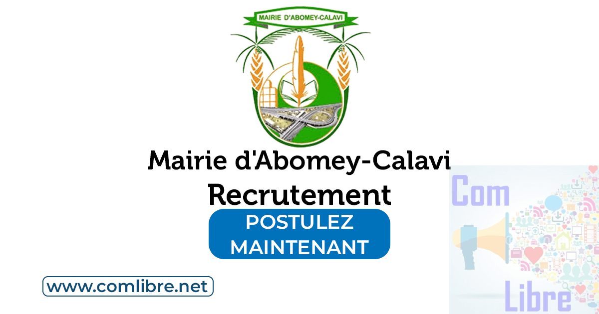 Dans le cadre du renforcement en ressources humaines du personnel de la Direction des Services Techniques, la mairie d’Abomey-Calavi lance un appel à candidature pour le recrutement de six (06) conducteurs d’engins lourds et d’un (01) technicien supérieur en mécanique générale, ou électromécanique et/ou mécanique industrielle pour un contrat à durée déterminée d’un (01) an.