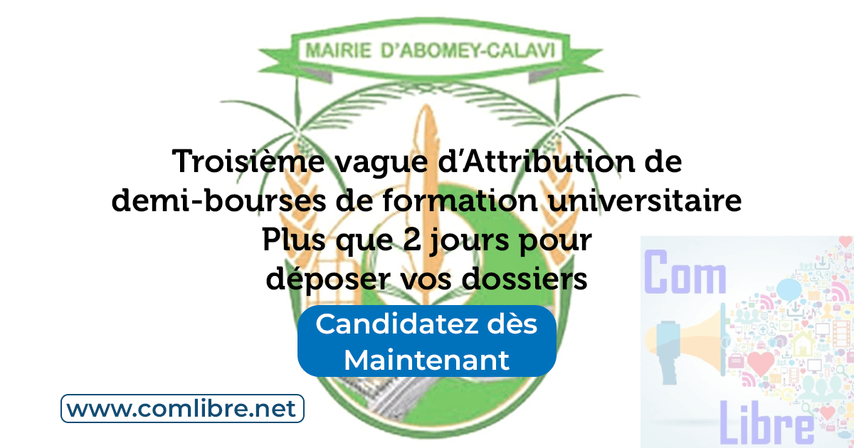 Le Maire de la municipalité d’Abomey-Calavi a rendu public un communiqué de presse annonçant la réouverture du dépôt des demandes de bourses universitaires.