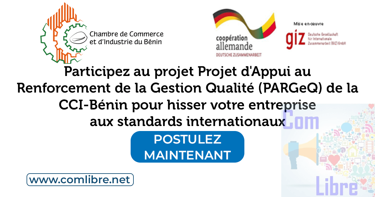 Le Projet d’Appui au Renforcement de la Gestion Qualité dans les Entreprises, initié par la Chambre de Commerce et d’Industrie du Bénin (CCI-Bénin) en partenariat avec l’Alliance pour la Qualité des Produits (AFPQ) et financé par la GIZ, vise à améliorer la gestion de la qualité dans les entreprises béninoises. Ce projet s’inscrit dans une démarche globale de promotion de la compétitivité des entreprises locales sur les marchés internationaux.