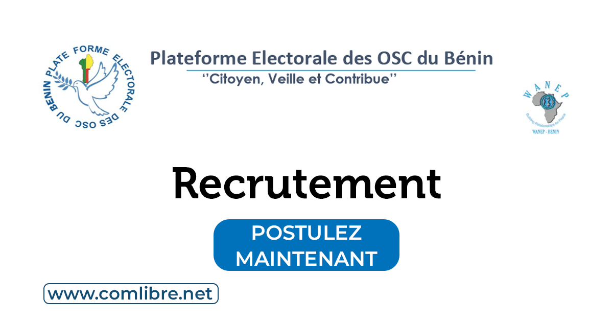 La Plateforme Électorale des Organisations de la Société Civile (PEOSC) du Bénin, coordonnée par WANEP-Bénin, lance un appel à candidatures pour renforcer son équipe dans le cadre des préparatifs des élections générales de 2026. Cet événement électoral sera une première pour les Béninois.