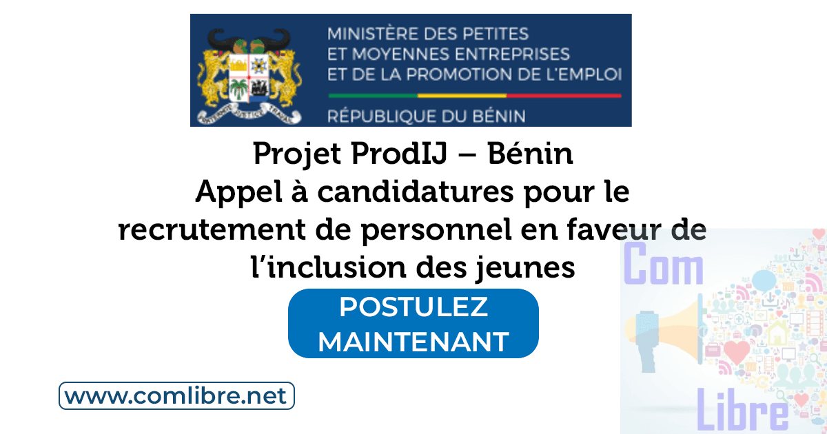 Le Gouvernement du Bénin, avec l’appui de la Banque mondiale, s’est engagé dans la mise en œuvre du Projet d’Inclusion des Jeunes (ProDIJ) en vue de contribuer à. la réduction du sous-emploi des jeunes. L’objectif de développement de cette intervention est d’accroître l’inclusion économique des jeunes âgés de 15 à 30 ans en situation de sous-emploi ou d’inactivité, ayant un faible niveau d’instruction (niveau maximum BEPC), et de renforcer les services de l’emploi et le système de formation technique au Bénin.
