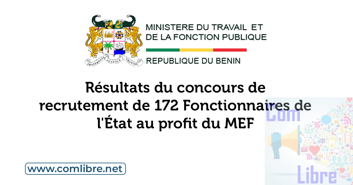 Le Ministère du Travail et de la Fonction Publique a dévoilé ce 08 Août 2025 les résultats du concours de recrutement de cent soixante-douze (172) Fonctionnaires de l’État au profit du ministère de l’Économie et des Finances.