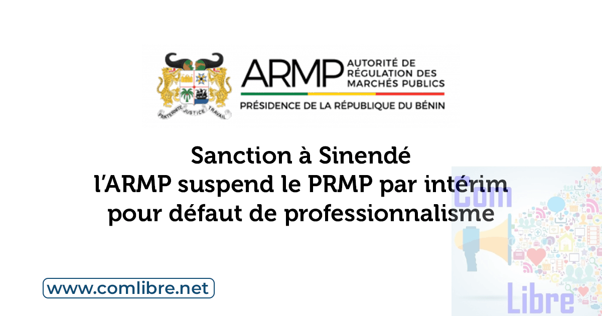 L’Autorité de Régulation des Marchés Publics (ARMP) a prononcé une sanction disciplinaire à l’encontre de Monsieur AHOUANSOU Ulysse Yaovi, Personne Responsable des Marchés Publics (PRMP) par intérim de la Commune de Sinendé. L’institution s’est auto-saisie après des soupçons d’irrégularités dans la gestion d’un appel d’offres lié à la construction d’une clôture, mettant en cause le respect des procédures en vigueur.