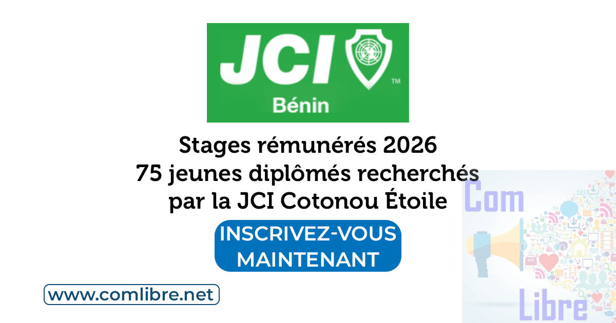 Dans un contexte où de nombreux jeunes peinent encore à trouver un emploi ou une opportunité professionnelle stable, il devient essentiel de créer des passerelles concrètes vers le marché du travail. C’est pourquoi la JCI Cotonou Étoile lance, dans le cadre du Salon de l’emploi et de l’entrepreneuriat (SEE), un projet exceptionnel offrant à 75 jeunes la chance de bénéficier d’un stage rémunéré. Cette initiative vise à renforcer leurs compétences, améliorer leur employabilité et leur ouvrir de véritables portes vers l’insertion professionnelle.