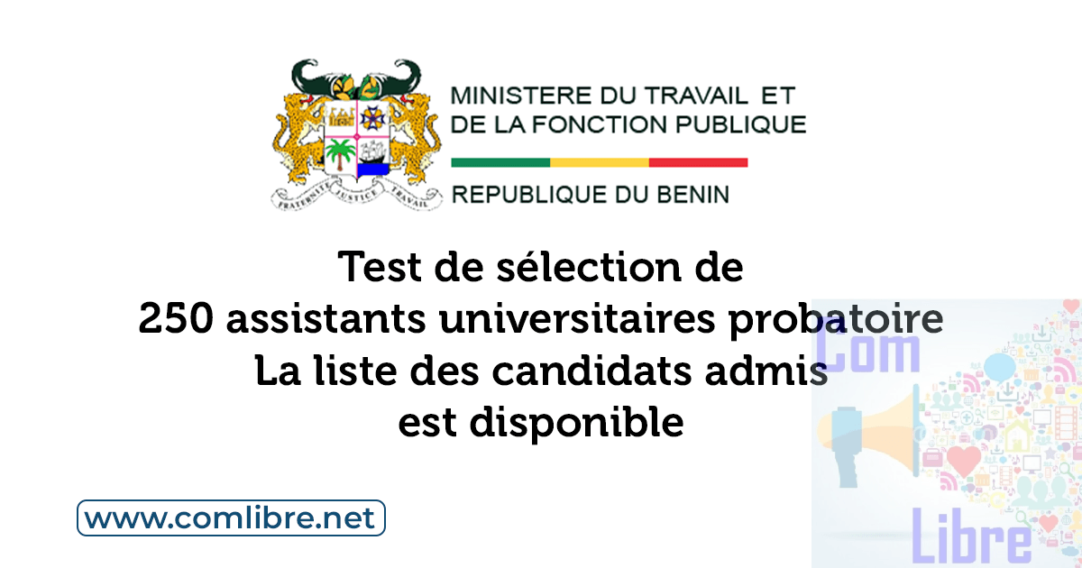 Ce dimanche 23 novembre 2025, le Ministère de Travail et de la Fonction Publique a publié les résultats définitifs du test de sélection des assistants en position probatoire au profit des Universités publiques du Bénin.