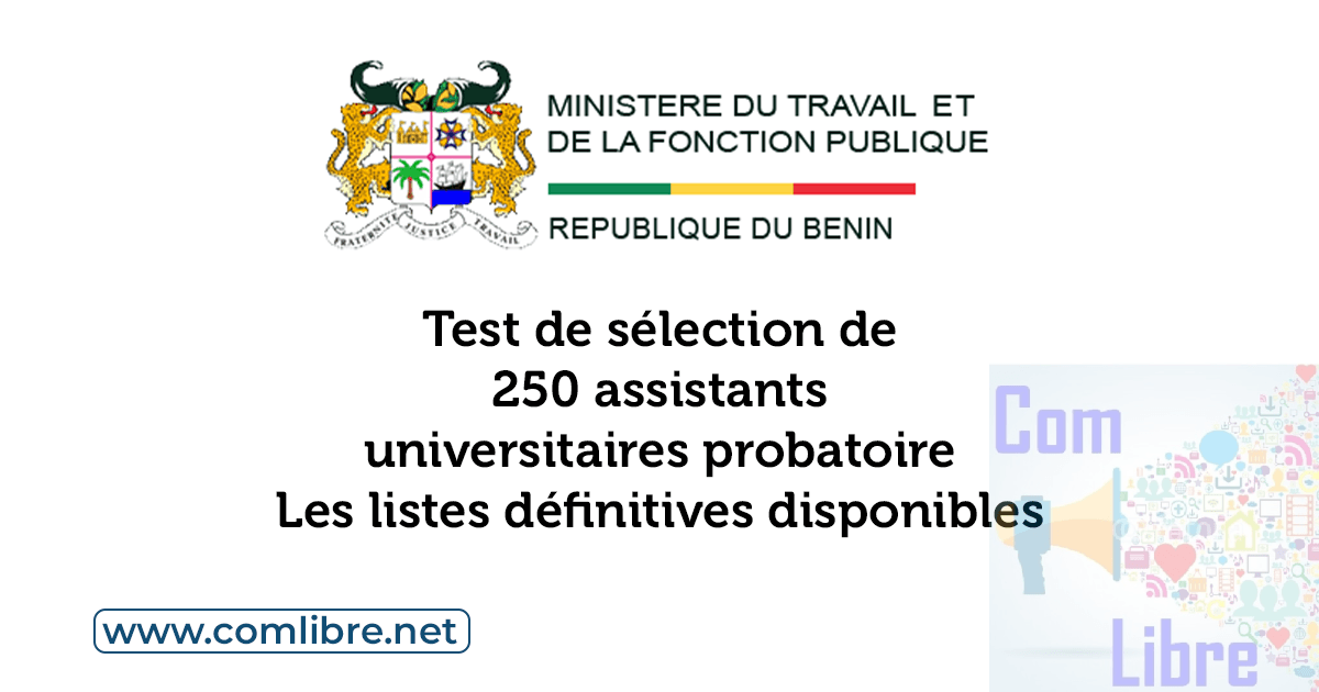 Le Ministère du Travail et de la Fonction Publique a ce mardi 09 septembre 2025 publié un communiqué concernant le test de sélection de 250 assistants en position probatoire pour servir dans les Universités Publiques du Bénin.