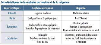 - la céphalée de tension s’accompagne de vertiges, baisse de la vue, paralysie d’un membre ou d’une partie du corps ;
